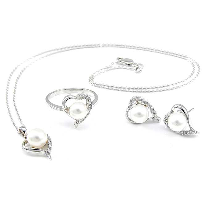 LOVE Heart Freshwater Pearl Ring / Earring / Necklace
